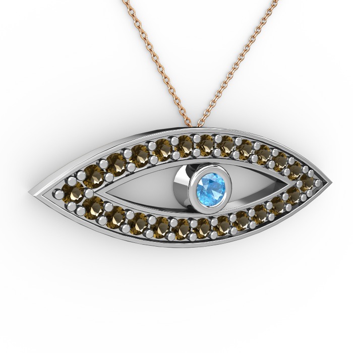 Akuamarin ve dumanlı kuvars 14 ayar beyaz altın kolye (40 cm rose altın rolo zincir)