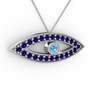 Akuamarin ve lab safir 8 ayar beyaz altın kolye (40 cm gümüş rolo zincir)
