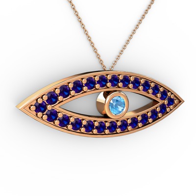 Akuamarin ve lab safir 925 ayar rose altın kaplama gümüş kolye (40 cm gümüş rolo zincir)