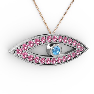 Akuamarin ve pembe kuvars 8 ayar beyaz altın kolye (40 cm rose altın rolo zincir)
