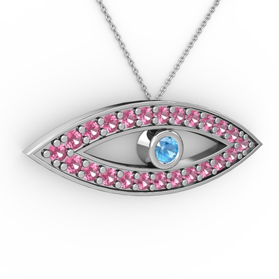 Akuamarin ve pembe kuvars 925 ayar gümüş kolye (40 cm beyaz altın rolo zincir)