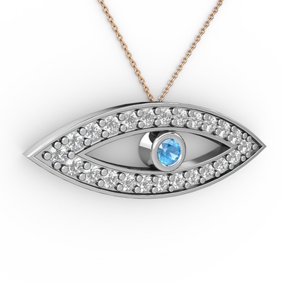 Akuamarin ve pırlanta 14 ayar beyaz altın kolye (0.264 karat, 40 cm rose altın rolo zincir)