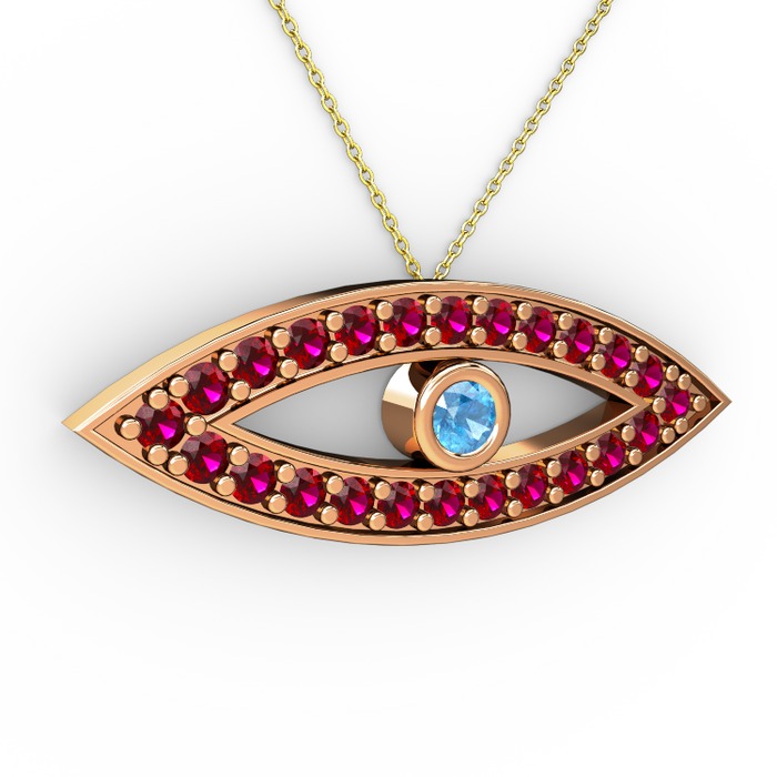 Akuamarin ve rodolit garnet 8 ayar rose altın kolye (40 cm altın rolo zincir)