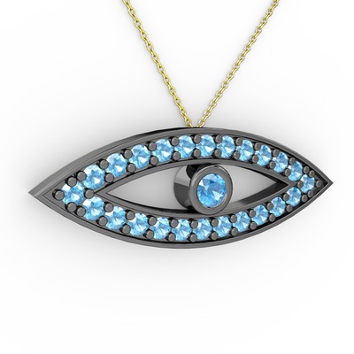 Akuamarin 925 ayar siyah rodyum kaplama gümüş kolye (40 cm altın rolo zincir)