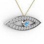 Akuamarin ve swarovski 18 ayar beyaz altın kolye (40 cm gümüş rolo zincir)