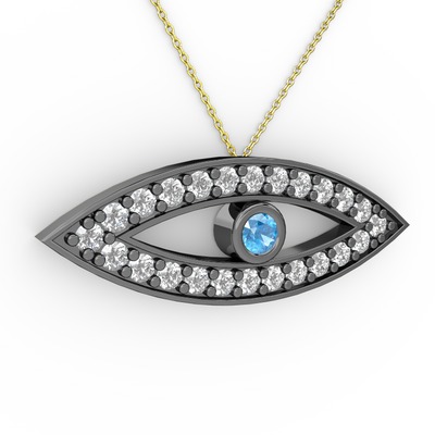 Akuamarin ve swarovski 925 ayar siyah rodyum kaplama gümüş kolye (40 cm gümüş rolo zincir)