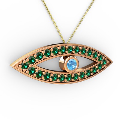 Akuamarin ve yeşil kuvars 8 ayar rose altın kolye (40 cm altın rolo zincir)
