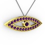 Ametist 925 ayar altın kaplama gümüş kolye (40 cm gümüş rolo zincir)