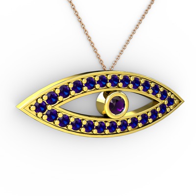 Ametist ve lab safir 14 ayar altın kolye (40 cm rose altın rolo zincir)