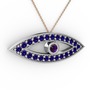 Ametist ve lab safir 8 ayar beyaz altın kolye (40 cm gümüş rolo zincir)