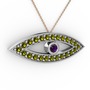 Ametist ve peridot 8 ayar beyaz altın kolye (40 cm gümüş rolo zincir)
