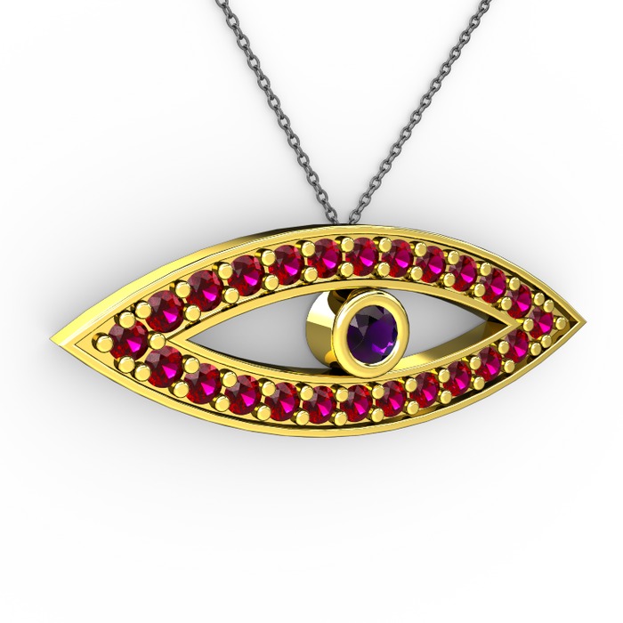 Ametist ve rodolit garnet 8 ayar altın kolye (40 cm gümüş rolo zincir)
