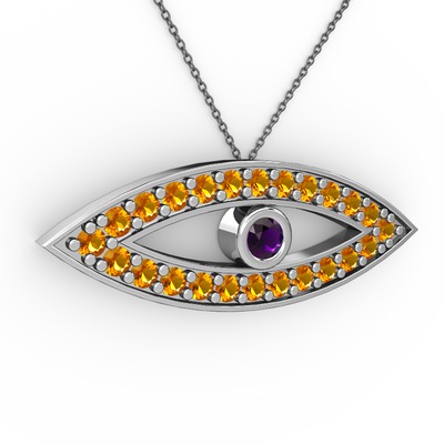 Ametist ve sitrin 8 ayar beyaz altın kolye (40 cm gümüş rolo zincir)
