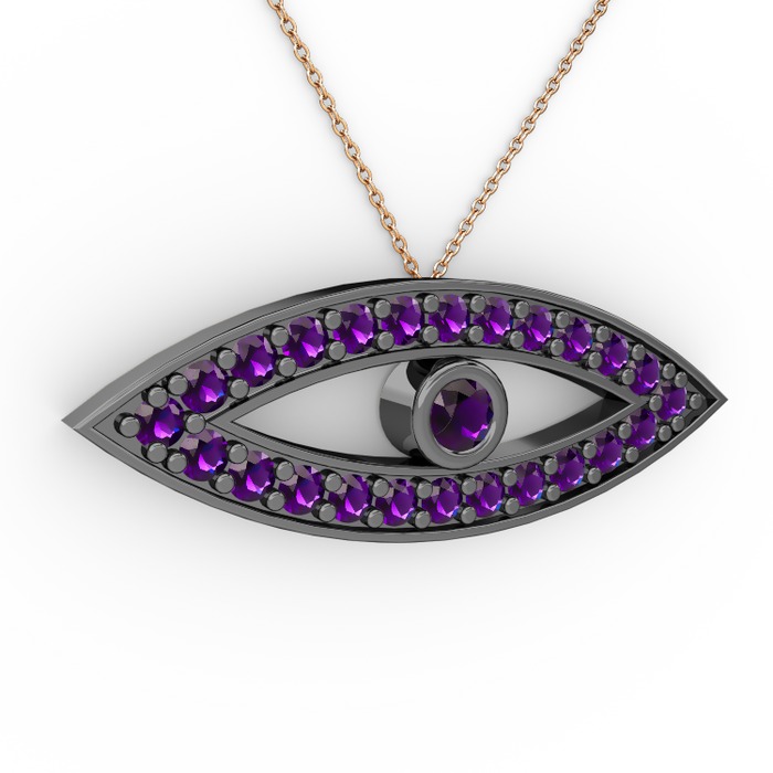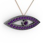 Ametist 925 ayar siyah rodyum kaplama gümüş kolye (40 cm rose altın rolo zincir)