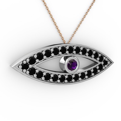 Ametist ve siyah zirkon 8 ayar beyaz altın kolye (40 cm rose altın rolo zincir)