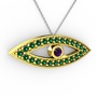 Ametist ve yeşil kuvars 8 ayar altın kolye (40 cm beyaz altın rolo zincir)