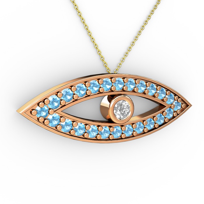 Beyaz zirkon ve akuamarin 8 ayar rose altın kolye (40 cm altın rolo zincir)