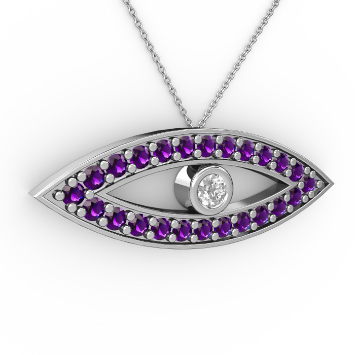 Beyaz zirkon ve ametist 14 ayar beyaz altın kolye (40 cm beyaz altın rolo zincir)