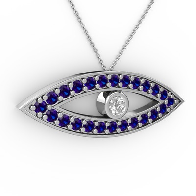 Beyaz zirkon ve lab safir 14 ayar beyaz altın kolye (40 cm beyaz altın rolo zincir)