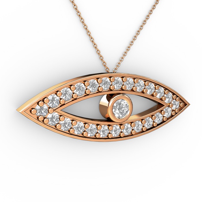 Beyaz zirkon ve pırlanta 18 ayar rose altın kolye (0.264 karat, 40 cm rose altın rolo zincir)