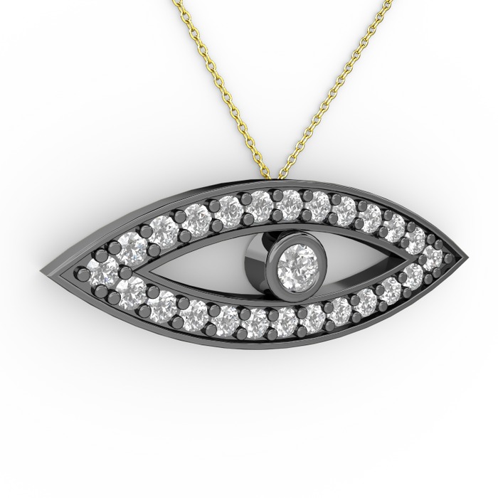 Beyaz zirkon ve pırlanta 925 ayar siyah rodyum kaplama gümüş kolye (0.264 karat, 40 cm altın rolo zincir)