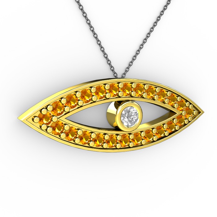 Beyaz zirkon ve sitrin 8 ayar altın kolye (40 cm gümüş rolo zincir)