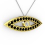 Beyaz zirkon ve siyah zirkon 14 ayar altın kolye (40 cm beyaz altın rolo zincir)
