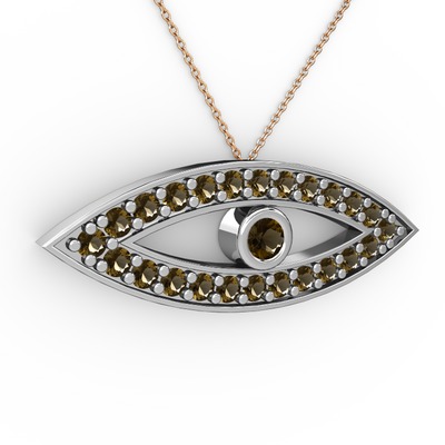 Dumanlı kuvars 8 ayar beyaz altın kolye (40 cm rose altın rolo zincir)