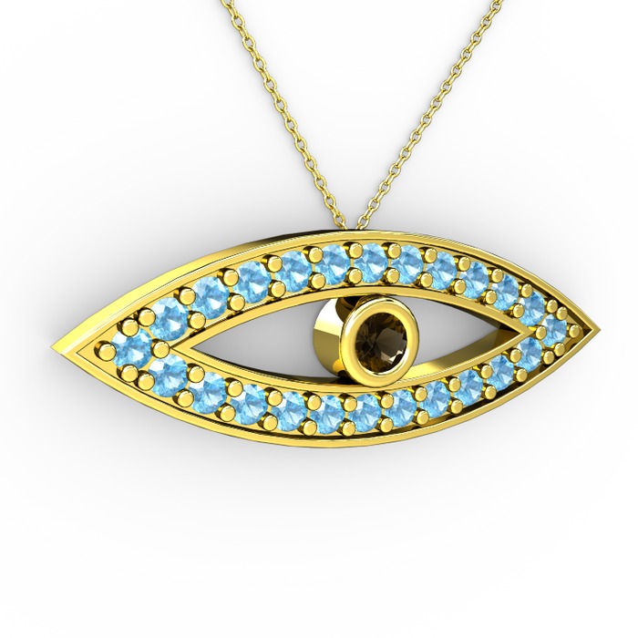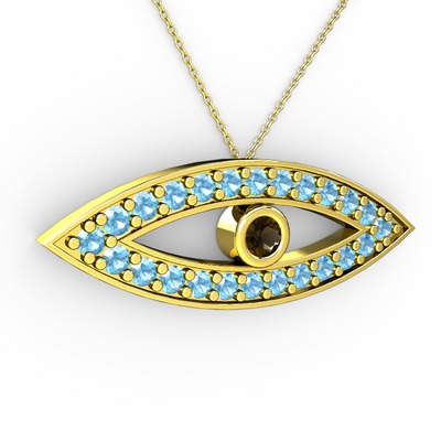 Dumanlı kuvars ve akuamarin 925 ayar altın kaplama gümüş kolye (40 cm altın rolo zincir)