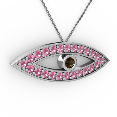 Dumanlı kuvars ve pembe kuvars 18 ayar beyaz altın kolye (40 cm gümüş rolo zincir)