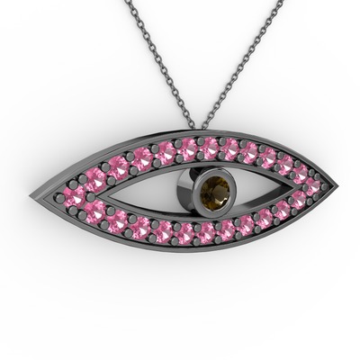 Dumanlı kuvars ve pembe kuvars 925 ayar siyah rodyum kaplama gümüş kolye (40 cm gümüş rolo zincir)