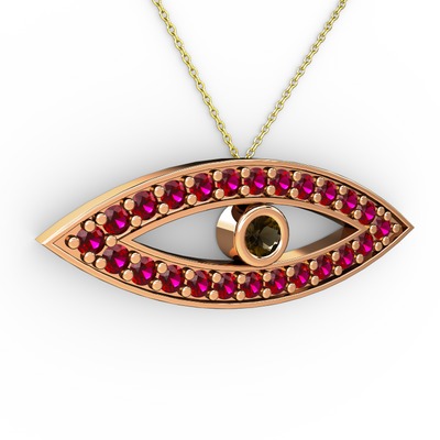 Dumanlı kuvars ve rodolit garnet 18 ayar rose altın kolye (40 cm altın rolo zincir)