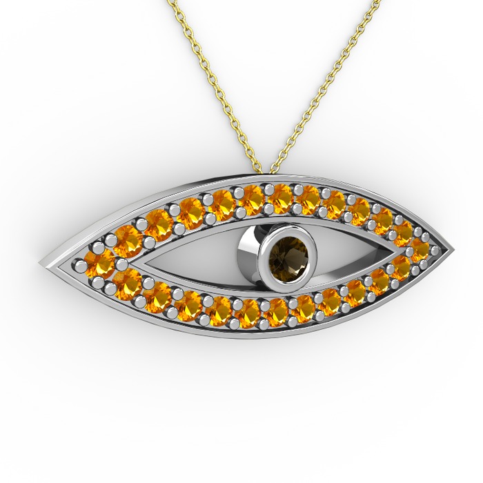 Dumanlı kuvars ve sitrin 14 ayar beyaz altın kolye (40 cm altın rolo zincir)