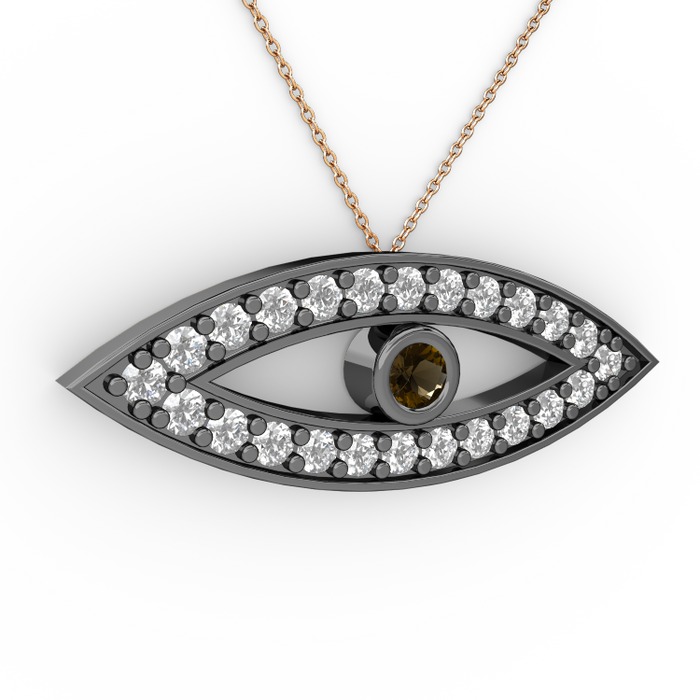 Dumanlı kuvars ve swarovski 925 ayar siyah rodyum kaplama gümüş kolye (40 cm gümüş rolo zincir)