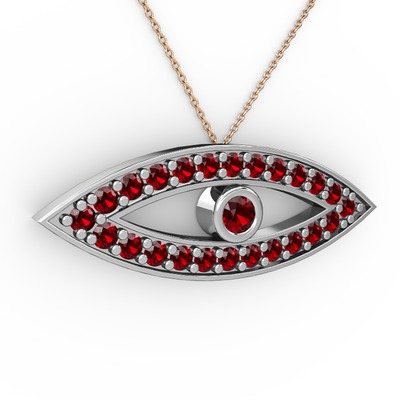 Garnet 8 ayar beyaz altın kolye (40 cm gümüş rolo zincir)