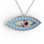 Garnet ve akuamarin 925 ayar gümüş kolye (40 cm beyaz altın rolo zincir)