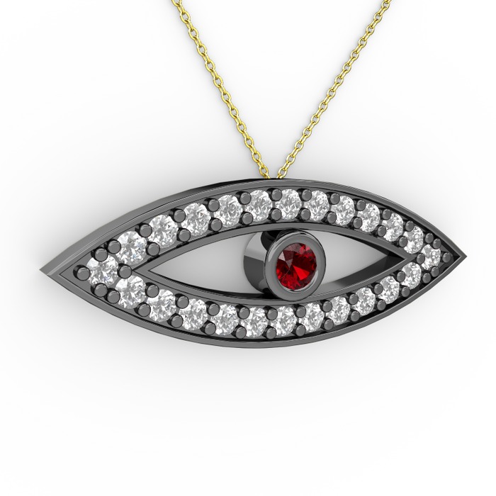 Garnet ve beyaz zirkon 925 ayar siyah rodyum kaplama gümüş kolye (40 cm altın rolo zincir)