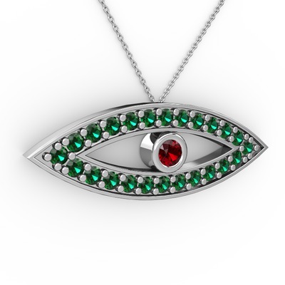 Garnet ve yeşil kuvars 18 ayar beyaz altın kolye (40 cm beyaz altın rolo zincir)