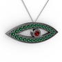 Garnet ve yeşil kuvars 925 ayar siyah rodyum kaplama gümüş kolye (40 cm gümüş rolo zincir)