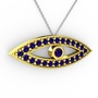 Lab safir 14 ayar altın kolye (40 cm gümüş rolo zincir)