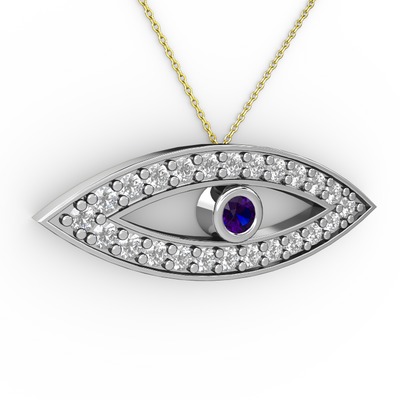 Lab safir ve pırlanta 14 ayar beyaz altın kolye (0.264 karat, 40 cm altın rolo zincir)