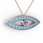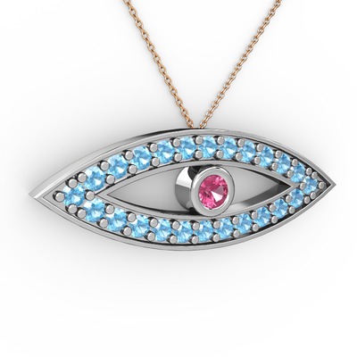 Pembe kuvars ve akuamarin 14 ayar beyaz altın kolye (40 cm rose altın rolo zincir)