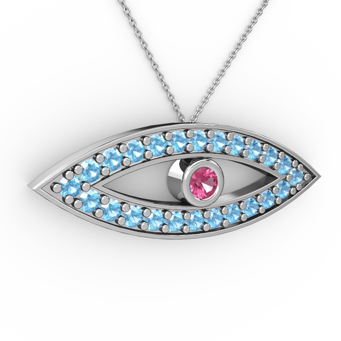 Pembe kuvars ve akuamarin 925 ayar gümüş kolye (40 cm beyaz altın rolo zincir)