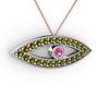Pembe kuvars ve peridot 14 ayar beyaz altın kolye (40 cm rose altın rolo zincir)