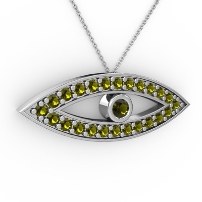 Peridot 8 ayar beyaz altın kolye (40 cm beyaz altın rolo zincir)