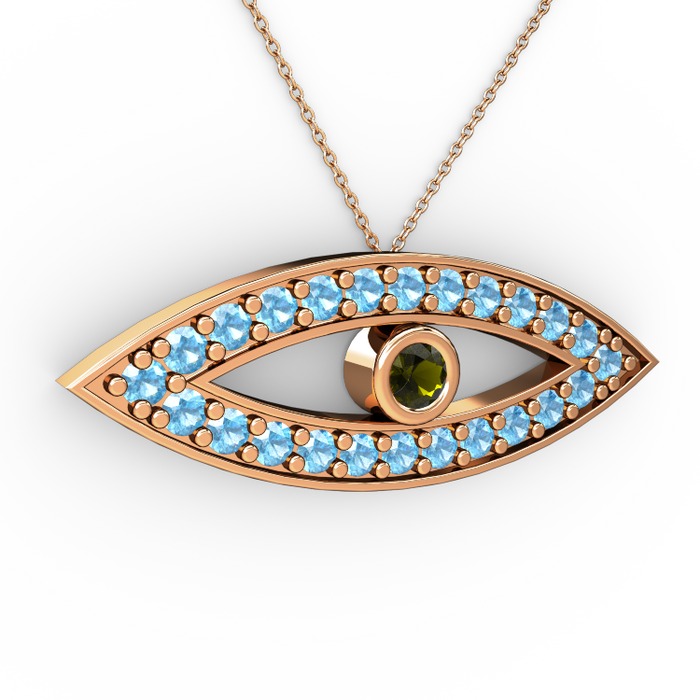Peridot ve akuamarin 8 ayar rose altın kolye (40 cm rose altın rolo zincir)