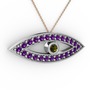 Peridot ve ametist 14 ayar beyaz altın kolye (40 cm rose altın rolo zincir)