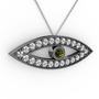 Peridot ve beyaz zirkon 925 ayar siyah rodyum kaplama gümüş kolye (40 cm beyaz altın rolo zincir)