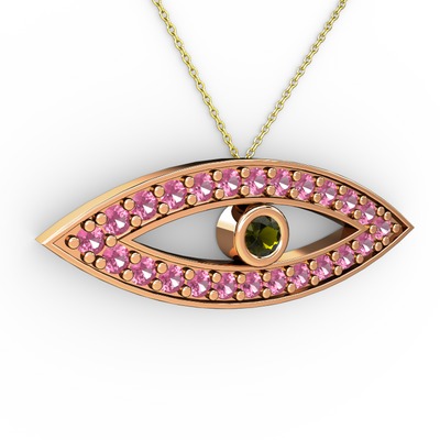 Peridot ve pembe kuvars 925 ayar rose altın kaplama gümüş kolye (40 cm altın rolo zincir)
