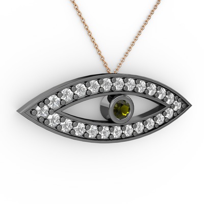 Peridot ve pırlanta 925 ayar siyah rodyum kaplama gümüş kolye (0.264 karat, 40 cm rose altın rolo zincir)